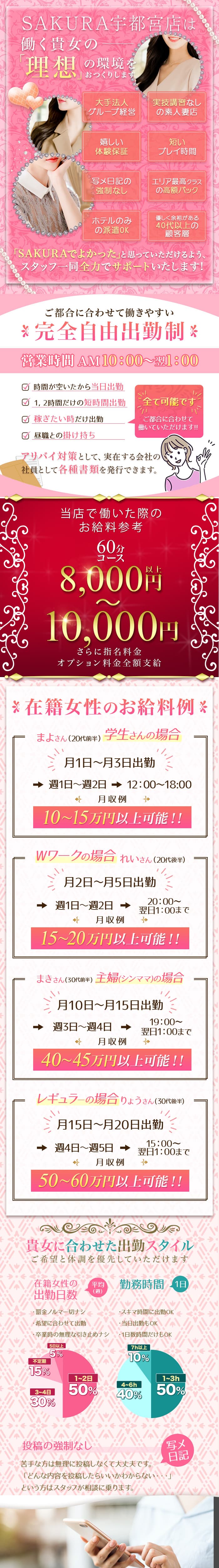 | 勤務日 | 自由出勤!月1日出勤でもOK!昼間だけ出勤・夜だけ出勤もOK! |